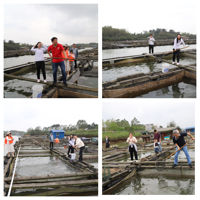 凤凰树种植结束后,在村民引导下,黄子鉴校友带领校友到养殖基地参观,并亲身体验凶猛鲈鱼捕捞工作。马密校友巾帼不让须眉,一次性捕捞鲈鱼4条,勇夺第一佳绩,厦二代小朋友也在活动中充分体验到捕鱼的快乐。