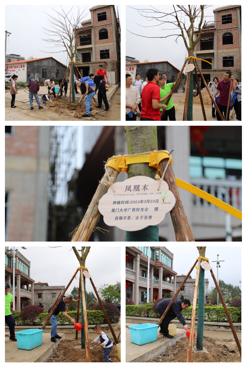 3月23日,厦门大学广西校友齐聚美丽村,一起种下凤凰树,以此纪念在厦门大学求学的青春岁月,纪念每个迎新时刻和毕业送别时刻,同时将“自强不息,止于至善”的厦门大学校训精神传递到美丽防城港,祝愿美丽村村民在黄子鉴校友的带领下,日子如同凤凰花一样红红火火。