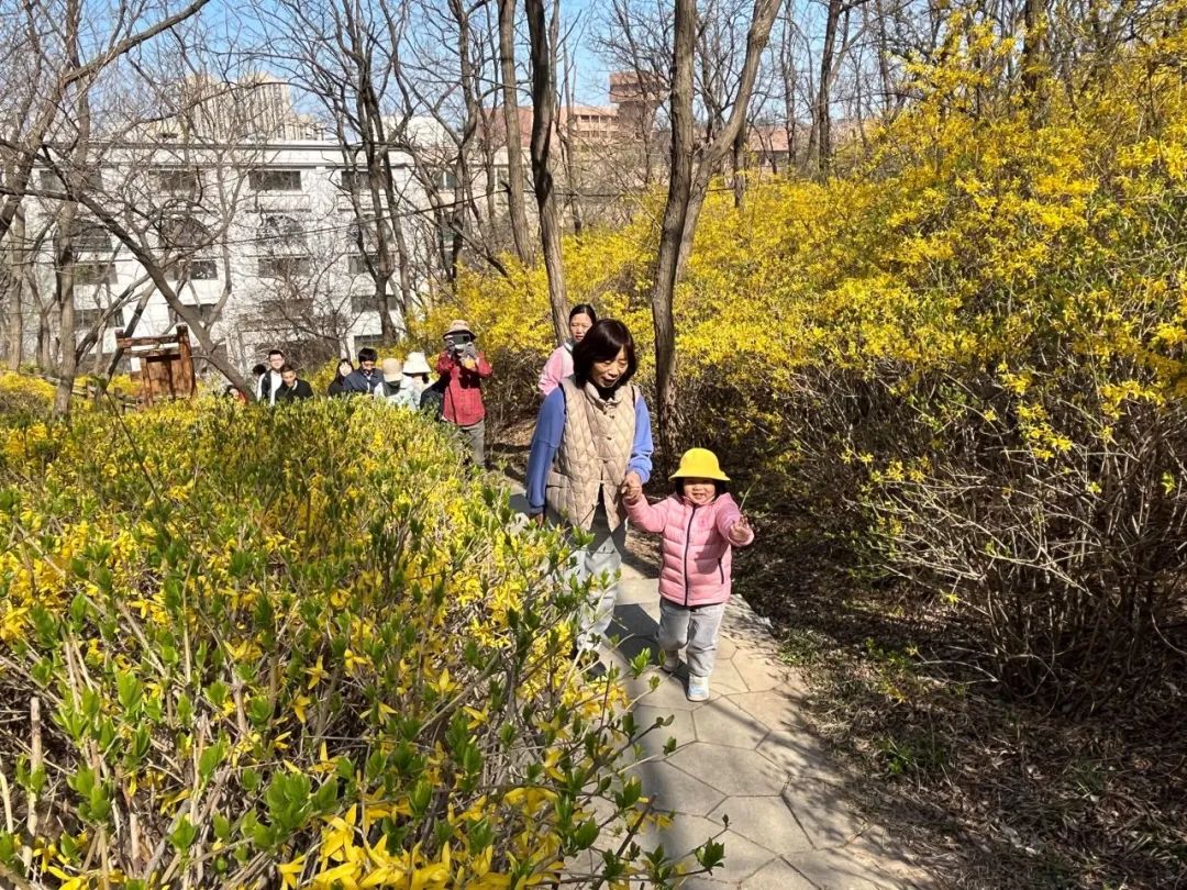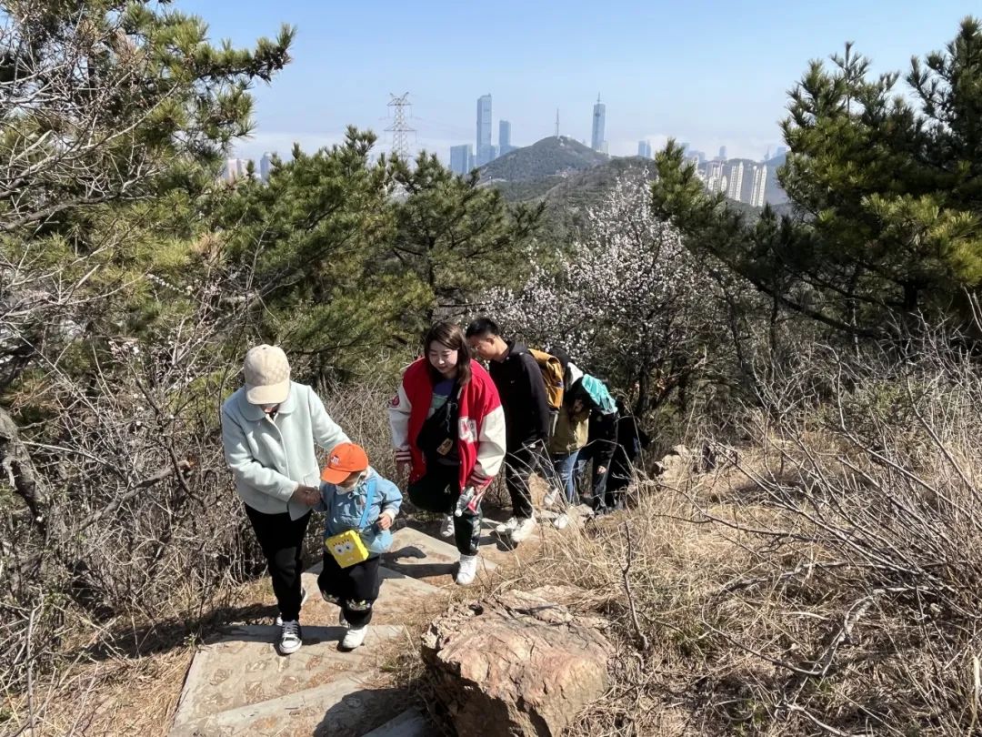 上午9点,徒步队伍从大连市图书馆出发,攀登白云山山体公园,公园里繁花盛开,尽显春光无限。登山伊始,校友们就被苍翠春山吸引,对沿途草木花鸟充满兴趣,个个积蓄力量,准备再攀高峰。