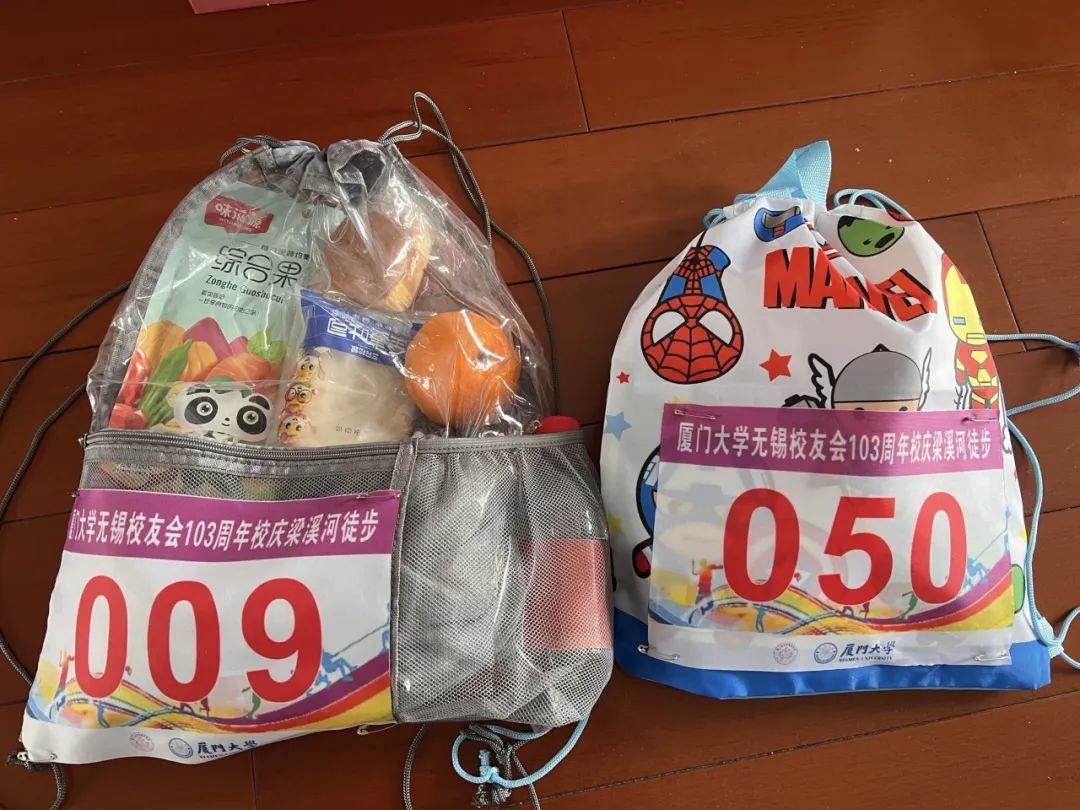 本次活动延续无锡校友会一贯风格,活动前期秘书组便为校友们准备好专属定制的活动装备,定制厦大徒步背包、专属徒步号码牌、定制矿泉水和完赛奖牌等等,得到校友普遍好评与喜爱。