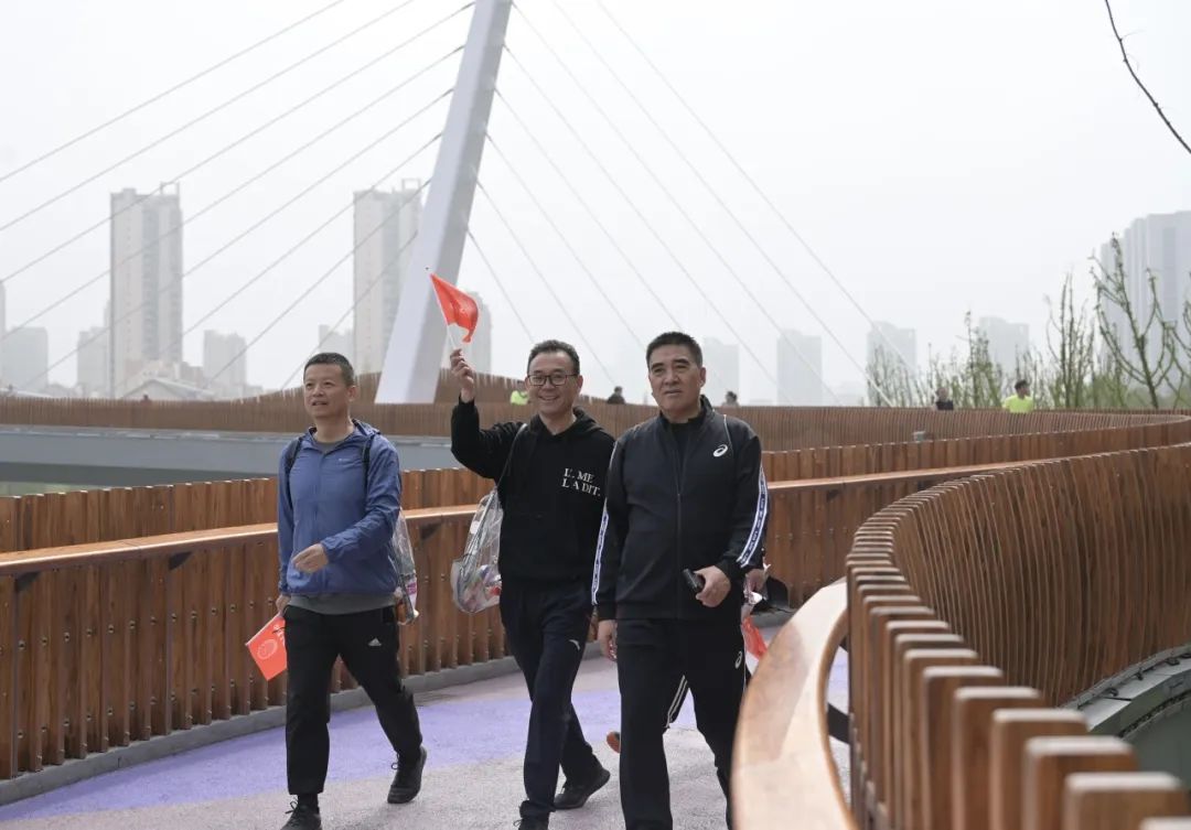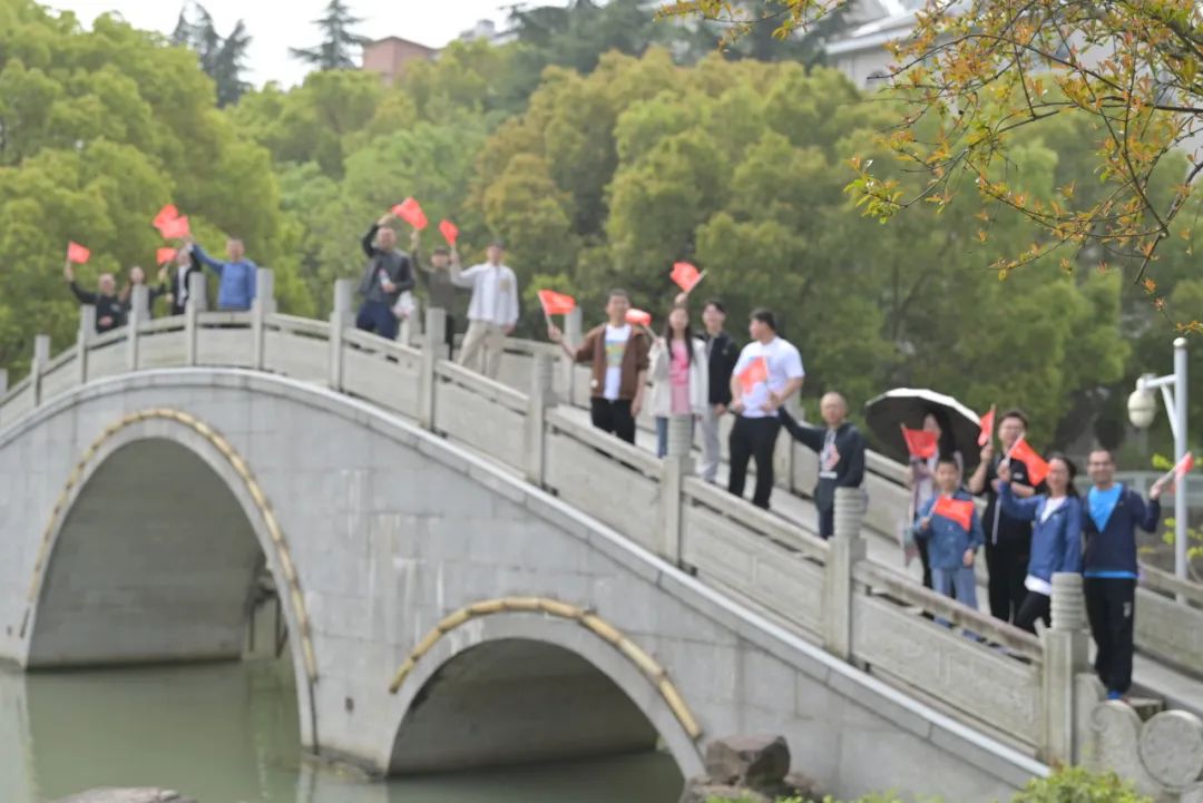 当日9点30分,校友们准时从如意桥南岸出发,途径西子梳妆和梁韵阁影后来到北岸活力外滩,经过仙蠡怀古和梁溪晓月等地,回到南岸的清溪渔宴和鸿桥心缘后回到如意桥,历时2个多小时,圆满完成本次徒步活动。在长达10.3公里的路程中,三十余名校友做到无一人放弃、无一人退出,更有小朋友们一路蹦蹦跳跳,最是兴奋,大家在和煦微风中舒展身心,在欢声笑语中步履不停。