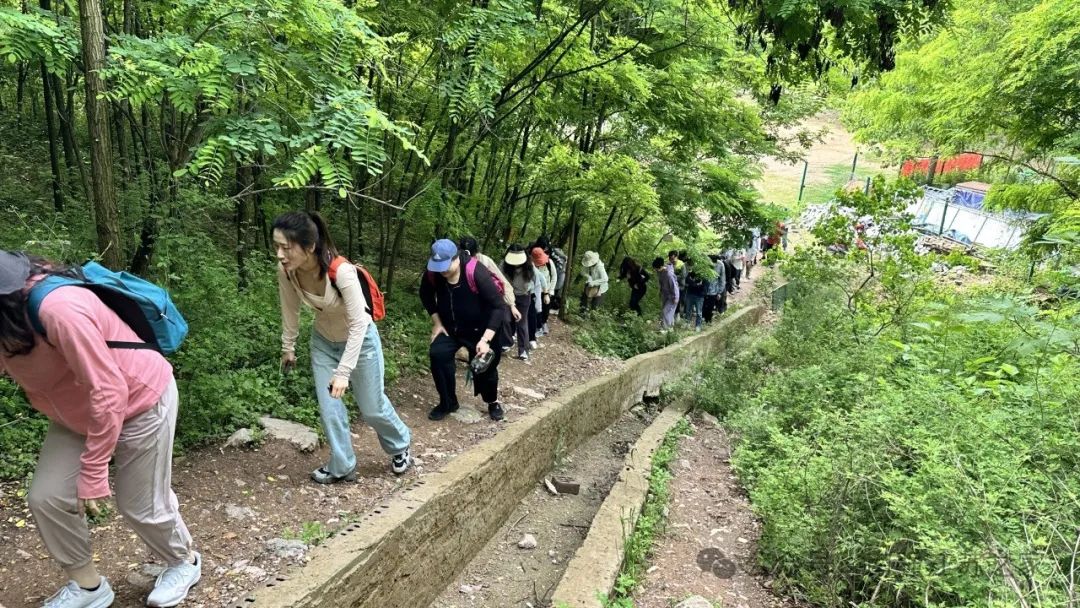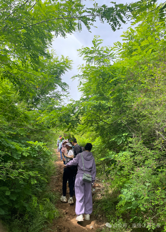 5月12日清晨,缕缕微风还夹杂着丝丝的凉意,参加活动的校友和亲属们早早地来到了南京佘村集合地点,大家身着徒步装备,每个人脸上都洋溢着期待与兴奋。集合完毕,40余人在大合影之后一起踏上神秘的“十里长凹"征程。