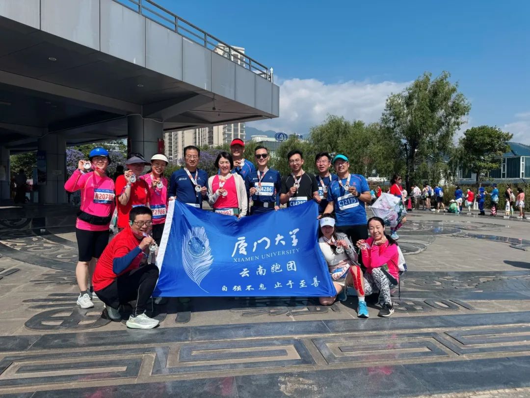 5月19日早上6时许,阳光明媚、凉风习习,身着厦门大学跑团服装的各地校友从大理州全民健身中心出发,开启马拉松赛。队员们步伐矫健、目光坚定,以最佳状态展示出厦大人风采。整齐的队伍,穿过晨曦第一缕阳光,沿着湛蓝的洱海湖畔,向着终点不断前行,并陆续冲过终点线,诠释了永不止步的马拉松精神和“自强”“至善”的厦大精神。