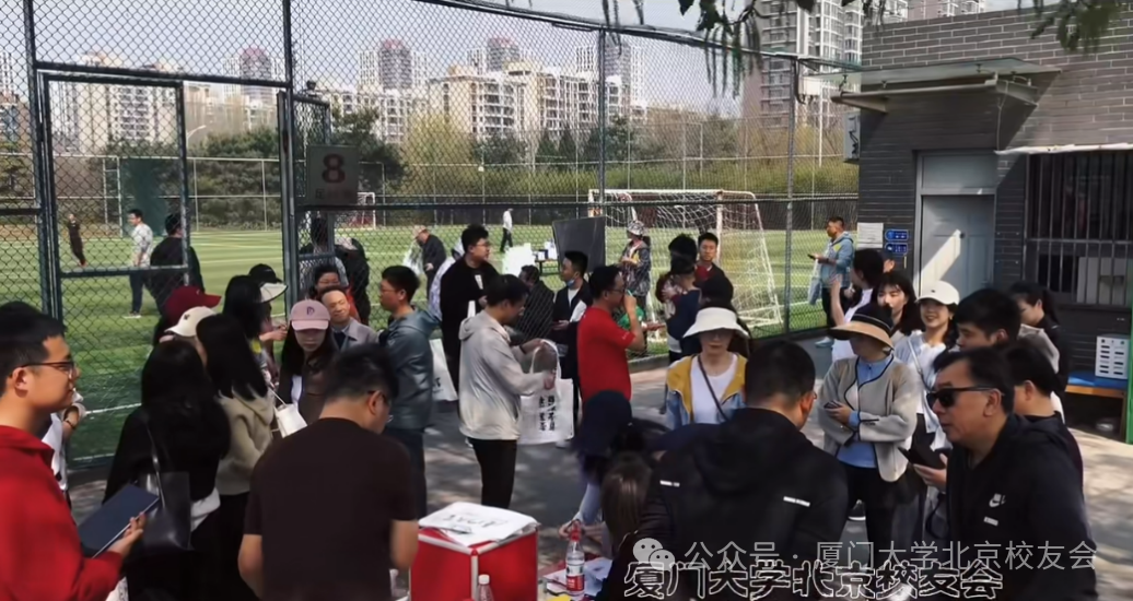 下午2点,活动正式开始,校友们集合于奥林匹克森林公园北园的足球场门口,进行签到,领取厦大环保手袋。