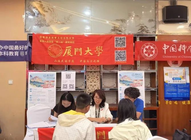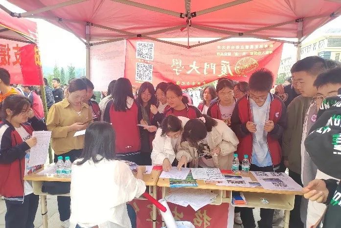 为期五天活动中,身披“厦大蓝”的招生宣传组 “化身”为多个小分队赶赴14个优秀生源基地高中,为考生及家长现场答疑解惑。招生宣传工作组成员从生涯规划个体咨询的角度出发,结合考生的高考分数、往年录取分数线,针对大家关注的我校优势特色、专业设置、志愿填报等问题,进行详细介绍和耐心解答。