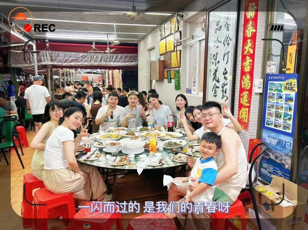 在校友们登船时,大家纷纷信心满满地说着“在嘉园坐了四年船,晕船什么的不存在”,然而下一秒,巨大的风浪让部分校友们开始晕头转向,互相依偎。晕船的感觉虽然让人难受,但却没有阻止他们享受岛上的第一顿海鲜大餐。