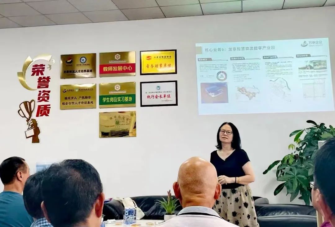 中国仓储与配送协会特聘专家、金达汇普(厦门)创始人、总经理、龙泰项目总顾问徐凤校友,就龙泰园区规划和仓储建筑设计理念作分享,综合化、专业化、标准化,仓配销一体化和绿色、数字、智能,是她提到最多的关键词。什么是传统物流?什么是打通全链条服务体系的现代化物流产业园?校友对这些问题有了比较清晰的认识。