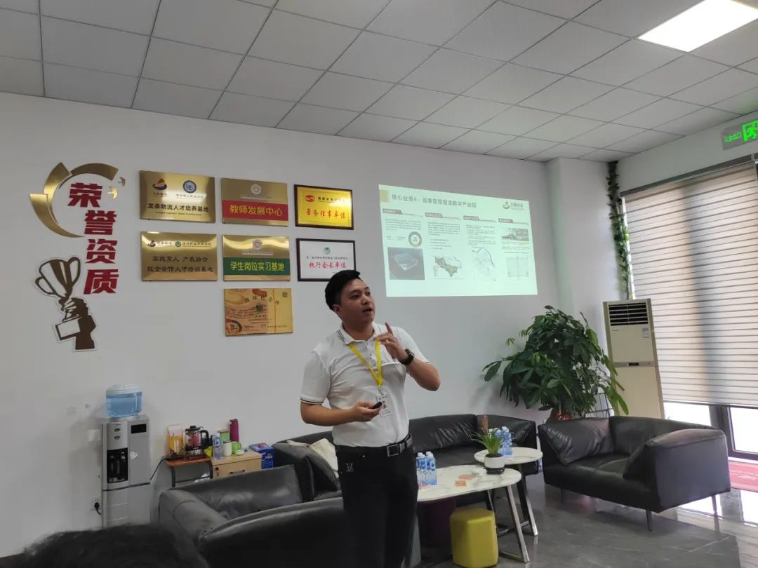 在龙泰招商部许荣秀经理带领下,校友们步入物流园区和办公综合楼参观,实地了解园区及周边产业布局。