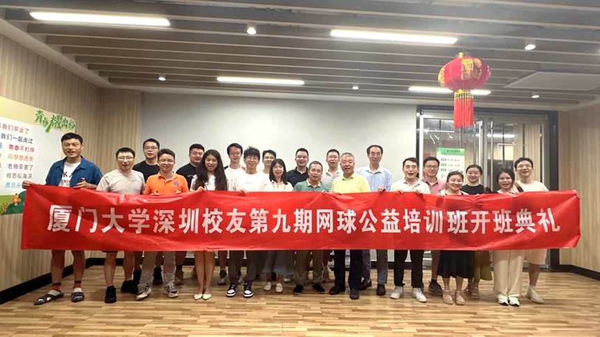 近日,厦门大学深圳校友会举办第九期公益网球培训班开班仪式。厦门大学深圳校友会副理事长李贵根、张映平,厦门大学深圳校友会副秘书长兼外文分会执行会长熊敏代表深圳校友会出席本次开班仪式,校友会理事许文卫、信息分会秘书长王剑通、会计分会副秘书长吴小虎、网球队队长兼网球班主教练保奇,网球班教练周波林、傅左根以及往届学员和第九期全体学员共22人参加开班仪式。
