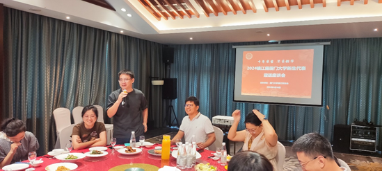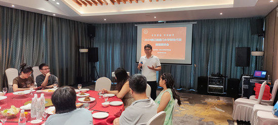 黄勇代表厦门大学镇江校友会对2024年考入厦门大学的6位镇江学子表示最热烈祝贺,并介绍厦门大学历史概况、镇江校友会成立情况及目前校友会整体情况,勉励6位新生将“自强不息 止于至善”校训融入自己人生,播撒希望种子,在人生新阶段书写新篇章。