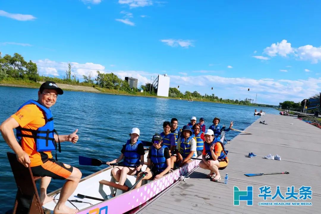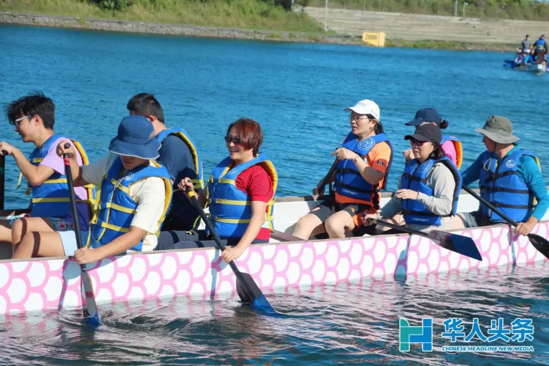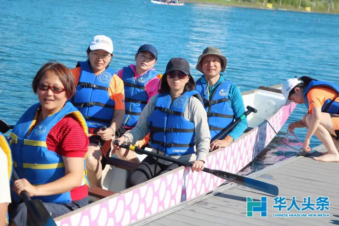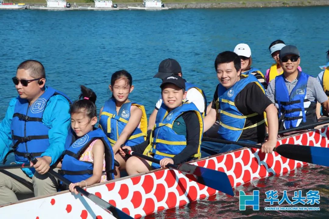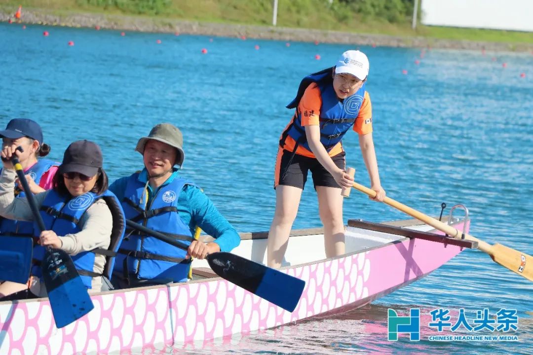 作为本次活动的亮点之一,龙舟竞渡吸引了众多校友和家属的参与。魁北克福建龙舟俱乐部作为蒙特利尔的老牌强队,又有多名厦大、福大校友是俱乐部金牌队员和义工,近水楼台先得月,这次特别派出了“秘密武器”——几位顶级队员来指导。校友们在龙舟俱乐部林福建、黄友恭、林逸函和林武清的带领下,虽然一开始动作有些七手八脚,但很快就找到了节奏,展现了校友间的默契和风采。即使是第一次接触龙舟的校友,也在鼓手的节奏中迅速进入状态,两艘龙舟展开了激烈的友谊赛,笑声比水花还大,大家都玩得不亦乐乎。