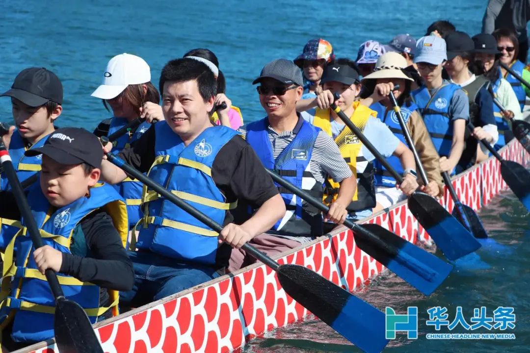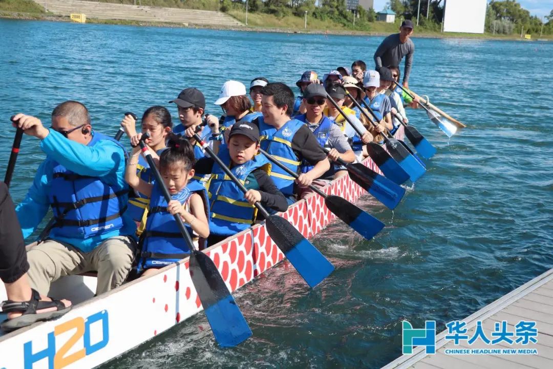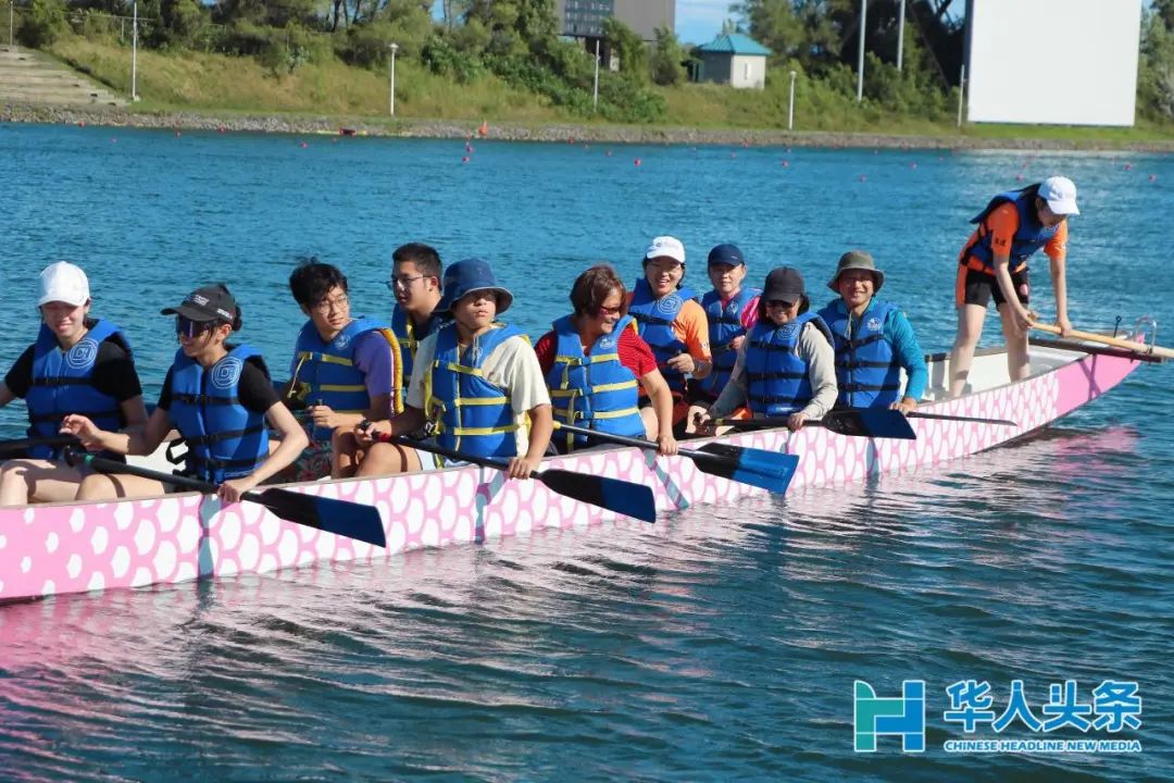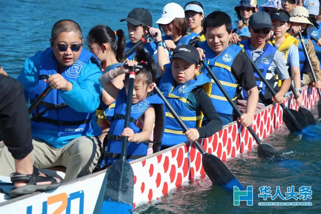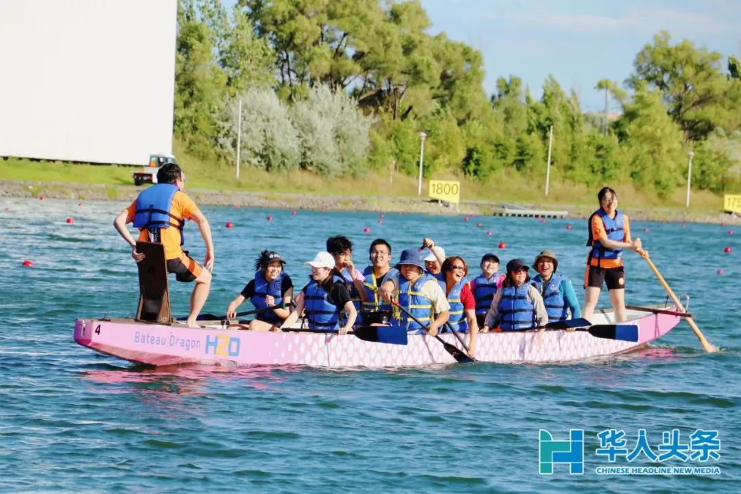 作为本次活动的亮点之一,龙舟竞渡吸引了众多校友和家属的参与。魁北克福建龙舟俱乐部作为蒙特利尔的老牌强队,又有多名厦大、福大校友是俱乐部金牌队员和义工,近水楼台先得月,这次特别派出了“秘密武器”——几位顶级队员来指导。校友们在龙舟俱乐部林福建、黄友恭、林逸函和林武清的带领下,虽然一开始动作有些七手八脚,但很快就找到了节奏,展现了校友间的默契和风采。即使是第一次接触龙舟的校友,也在鼓手的节奏中迅速进入状态,两艘龙舟展开了激烈的友谊赛,笑声比水花还大,大家都玩得不亦乐乎。