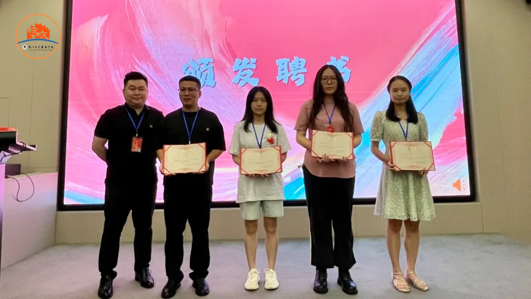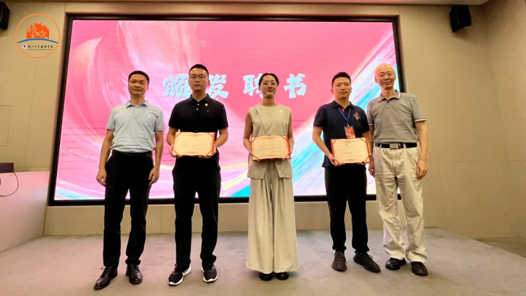 鲁同安、廖格民、叶志筑和郭槟锴一起为新增的副理事长、副秘书长和理事们颁发聘书。