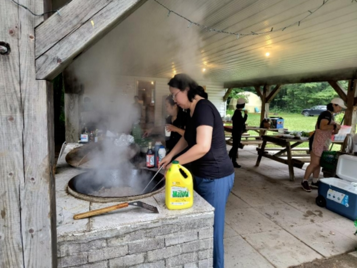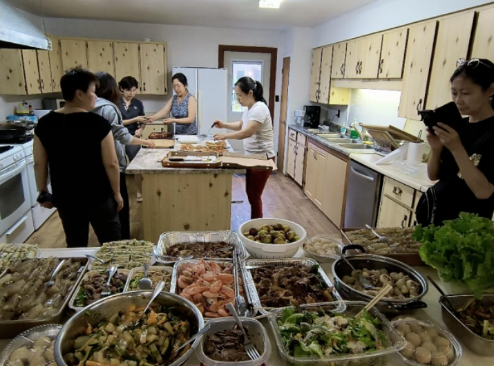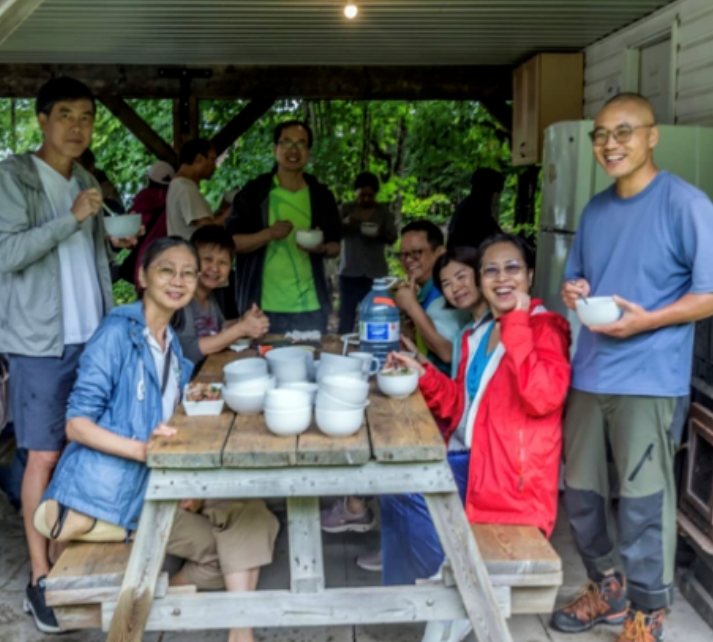 第二天清晨,多名校友齐聚厨房,为午饭做准备。在大家的共同努力下,校友享用了一顿美味的午宴。