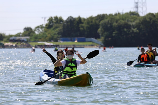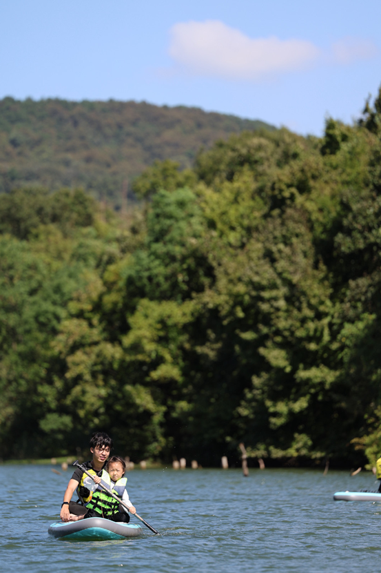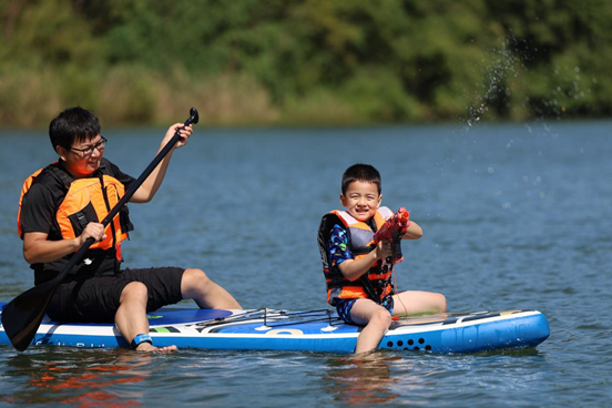 活动当天清晨,阳光温柔地洒在波光粼粼的佛手湖面上,校友们满怀期待地来到营地集合,签到后一起前往桨板准备区。
