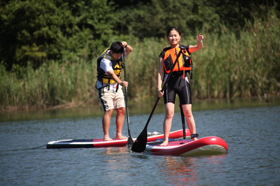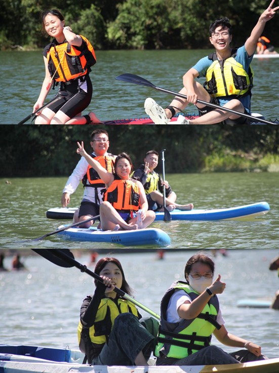 划桨板体验活动正式拉开序幕,校友们分成若干小组,穿上救生衣,手持桨板,踏上这场与水共舞的旅程。