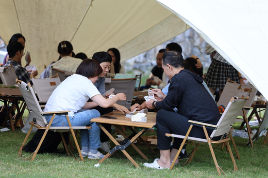 午后,阳光变得柔和,校友纷纷参与到轻松愉快的休闲活动中来。有的校友围坐一圈,玩起了扑克牌游戏,牌桌上的欢声笑语不断;有的则漫步于草坪湖畔,欣赏着湖光山色,享受着难得的宁静时光。氛围温馨而欢乐,彼此留下珍贵的合影,每个人脸上都洋溢着幸福的笑容,这份纯粹的快乐,让彼此的心更加贴近。