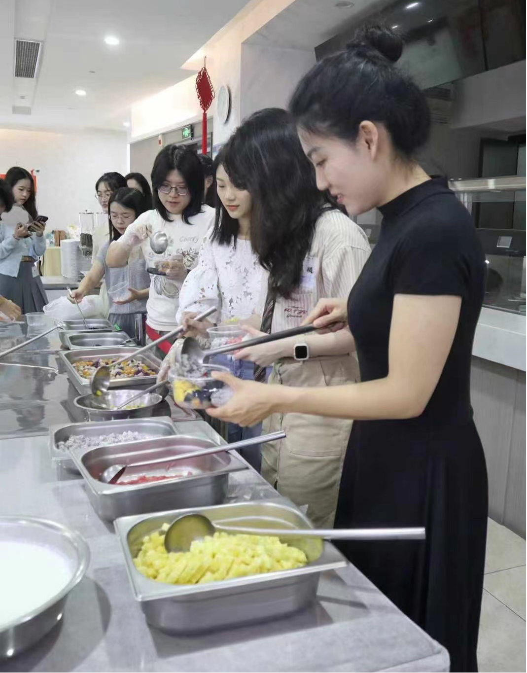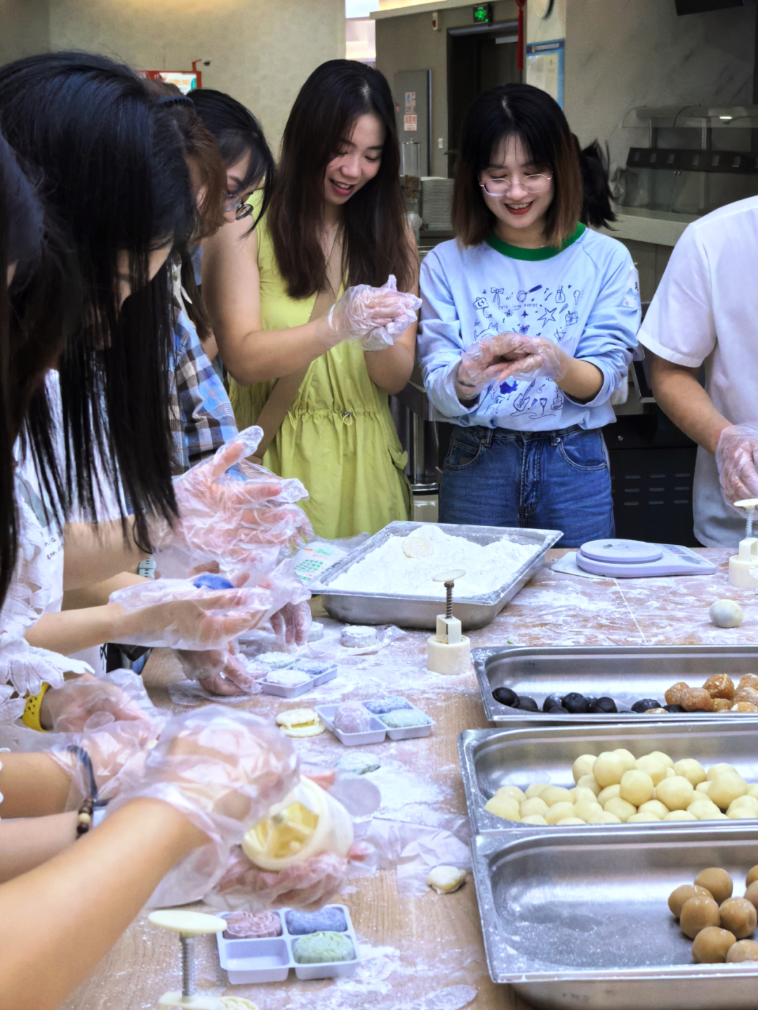 团团圆圆当然少不了象征圆满的月饼。冰皮月饼与传统月饼相比,更注重健康和创新,校友选择喜欢的各种馅料,制作自己的专属月饼。