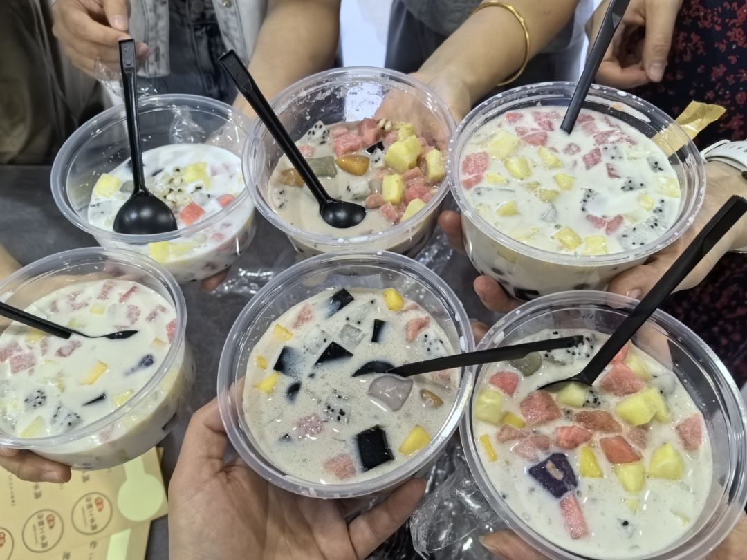 才离开厦门,转身就开始怀念闽南美食。四果汤摊位排起长龙,大家纷纷上手制作四果汤。仙草冻、芋圆、西瓜、菠萝等五颜六色的配料,唤醒了大家的“厦门味蕾”。
