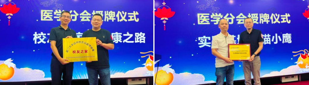现场还为医学分会校友之家(健康之路)及实践基地(猫小鹰儿童眼科)进行了授牌。来自健康之路的医学分会副会长陈晶表示,未来医学分会在福州会有更多的校友之家,愿校友之家及实践基地能开展丰富多彩的校友活动,践行服务于校友的理念。