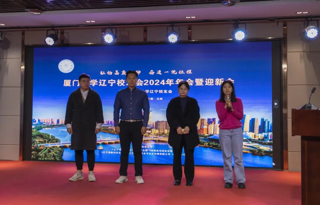 2024届新校友周姝、陈玲玲、季轩皓、刘博儒上台依次发表感言,他们深情表达了对母校的眷恋以及对工作和生活的憧憬,表示一定会弘扬嘉庚精神和“自强不息,止于至善”的校训精神为己任,为东北振兴发展添砖加瓦。