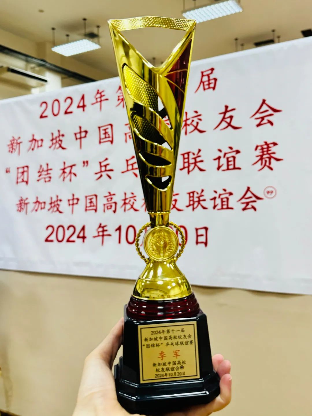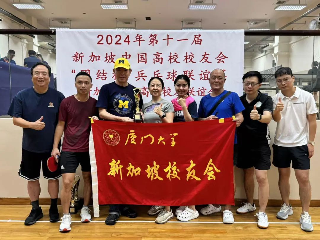 2024年10月20日,在新加坡中国高校校友会主办的第十一届“团结杯”乒乓球联谊赛中,厦门大学新加坡校友会乒乓球队表现出色,经过激烈的角逐,最终斩获季军。这一荣誉展现了厦门大学新加坡校友优秀的体育素质,和团结一致、顽强拼搏的精神风貌。