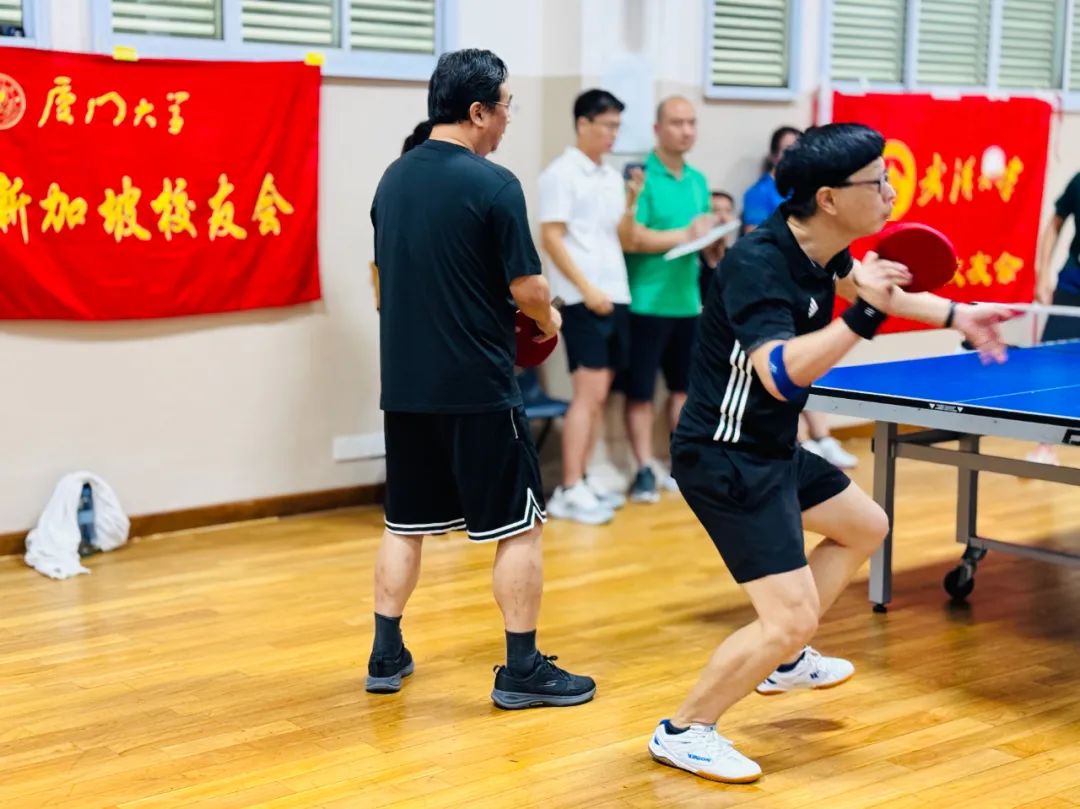 此次厦门大学新加坡校友会乒乓球队老队员陈孙卫、洪琪,加上特地从香港赶回来参赛的陈本美、杨明,以及新加入校友会的戴昀组成了实力与青春并存的阵容。他们在比赛中展现了顽强拼搏、奋勇争先的精神。此外,厦大校友汪卫彬还担任了赛事裁判,为各个校友会队伍的顺利完赛提供保障。