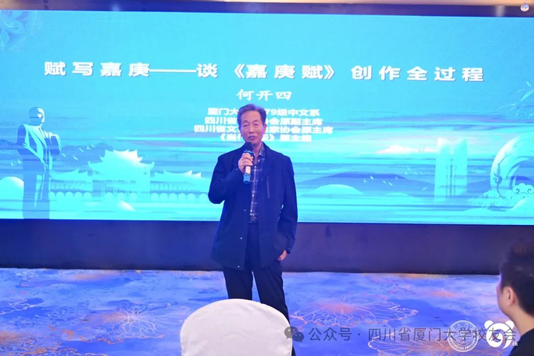 他说,因为四川校友会对嘉庚精神和母校的深厚情怀,他有机缘创作了《嘉庚赋》,第九届全球校友代表大会的圆满举办处处沁润着对嘉庚精神的美好颂扬。