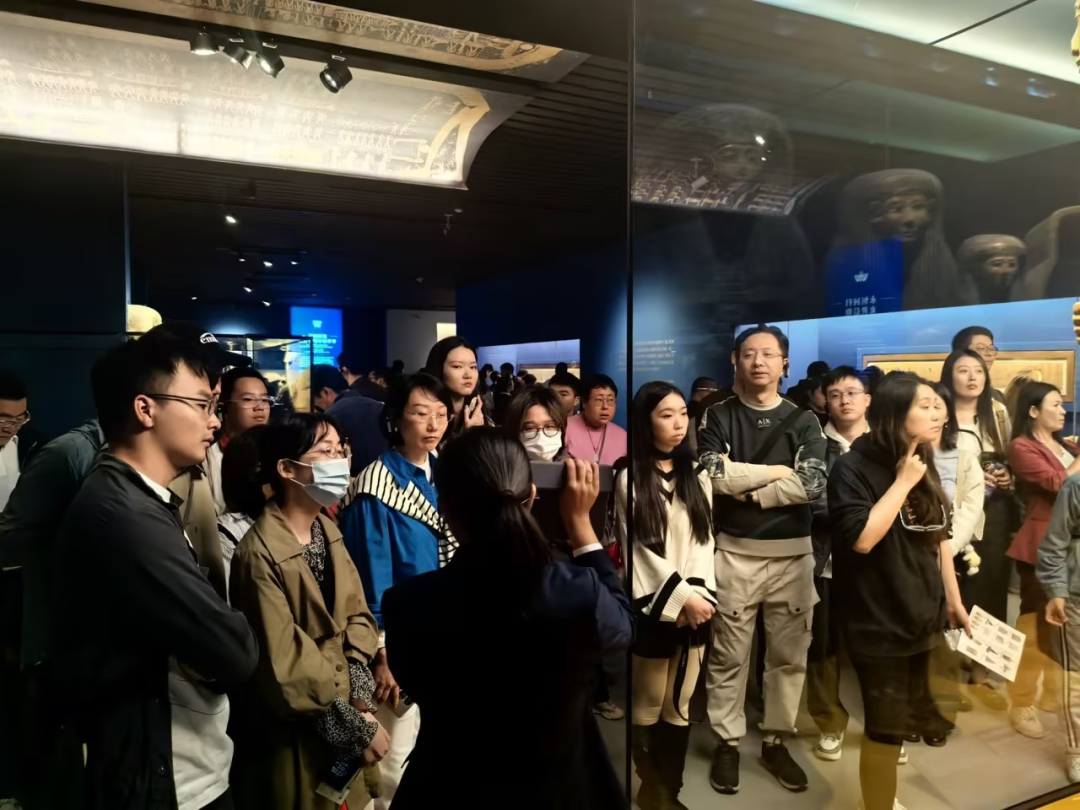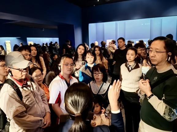 作为历史学科专业出身,厦门大学历史学科的校友们对此次展览表现出了浓厚的兴趣。他们在专业讲解员的引导下,深入了解了每一件展品的历史背景和文化意义,并不时就感兴趣的展品同讲解员作沟通交流。参观过程中,校友们不仅对古埃及文明有了更直观的认识,也对中埃两大文明的交流与互鉴有了更深刻的理解。