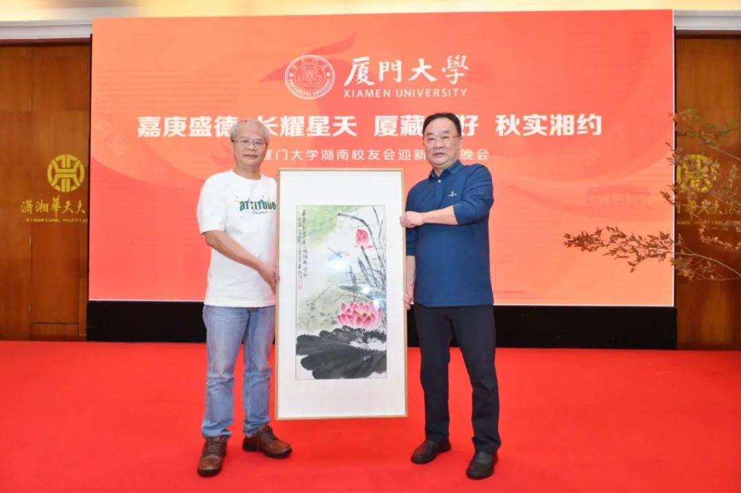 湖南校友会秘书长万坚,深受嘉庚先生感召,在这个特别日子,捐赠湖南校友会一幅字画,表达对嘉庚先生的敬仰与缅怀之情。