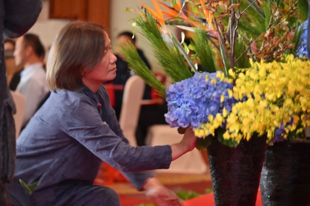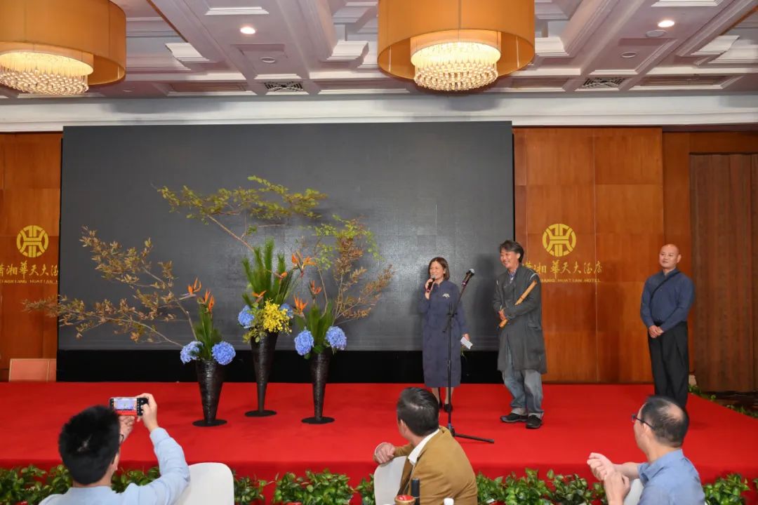 活动在校友一个个饱含深情的节目中被推向高潮。邓丙午校友携手插花“同学”非非(华道家元池坊湖南省学会首席插花教授)带来《致敬与飞翔》插花表演,安良平(华道家元池坊湖南省学会插花教授)以一首尺八演奏《虚铃》将花语娓娓道来,花枝在巧妙的手与灵韵的乐中摇曳生姿、清丽绽放。