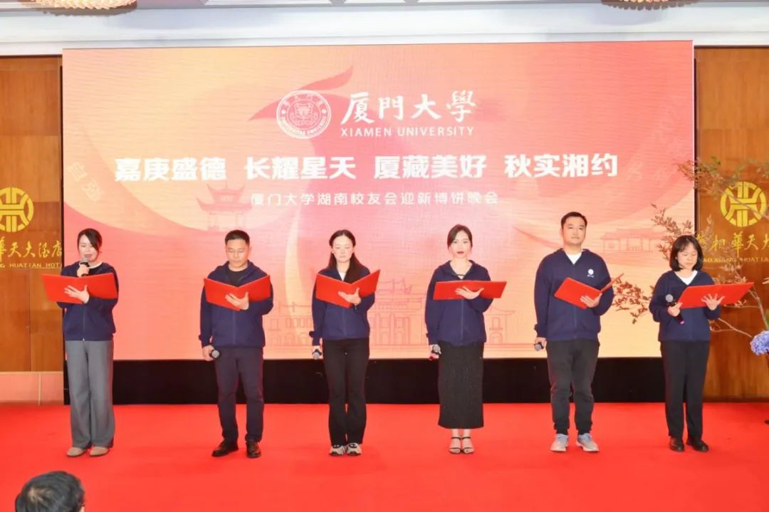 元嘉燃星火,长庚耀新天。10月20日,厦门大学湖南校友会2024年迎新博饼大会在长沙隆重举办,今年的活动以“嘉庚盛德 长耀星天,厦藏美好 秋实湘约”为主题,旨在纪念校主陈嘉庚先生诞辰150周年。金秋十月,硕果累累;群贤毕至,共襄盛举。北京大学、东南大学、中山大学、华中师范大学、南开大学、哈尔滨工业大学、武汉大学、大连理工大学、西南交通大学、中北大学等10余个在湘高校校友会负责人特邀出席,厦门大学深圳校友会、安徽校友会、武汉校友会、江西校友会等兄弟校友会校友代表专程赴会,来自省内各地各行业150余位校友欢聚一堂、其乐融融!