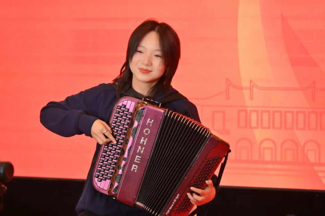 梁雨诗、曾意桐校友带来一首悠扬歌曲《鼓浪屿之波》。