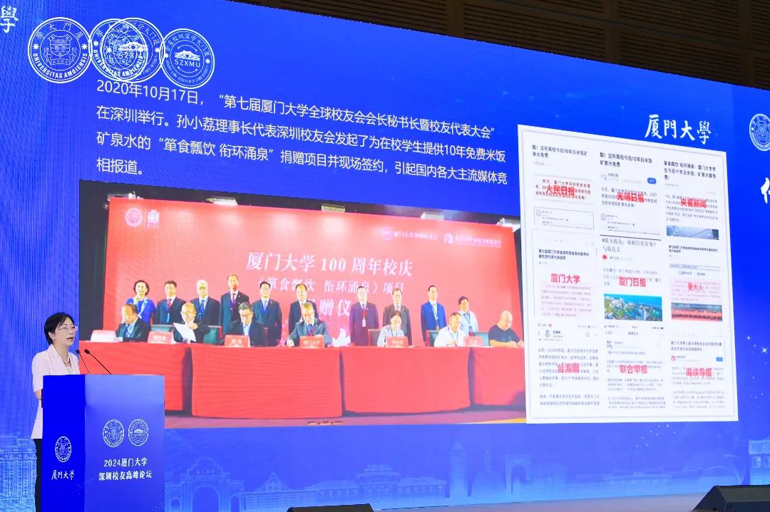 她号召深圳校友积极加入“箪食瓢饮 衔环涌泉”捐赠活动,倡议广大校友后续接力,以力所能及的方式回馈温暖、助力美好、传播大爱,弘扬厦大捐赠文化。