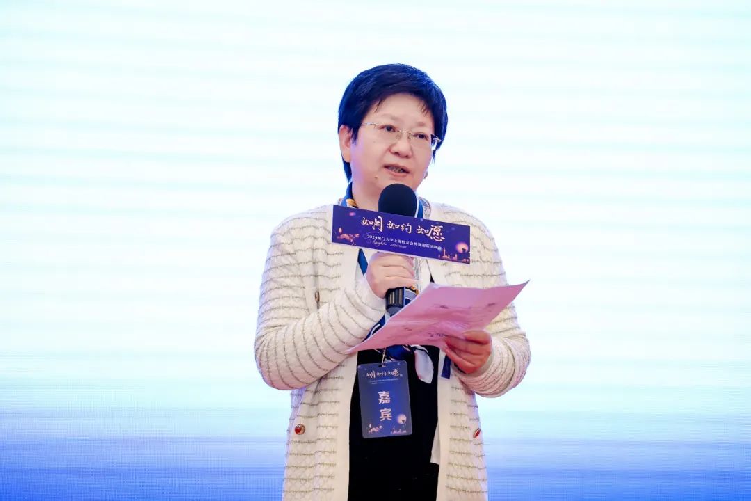 詹心丽代表母校、校友总会祝贺大会成功举办,向出席大会的来宾、校友及在沪校友致以诚挚问候。她追忆上海与厦门大学的珍贵情缘,细数上海校友会为服务校友、服务母校、服务社会作出的重要贡献,汇报厦门大学为纪念陈嘉庚先生诞辰150周年开展的系列活动。