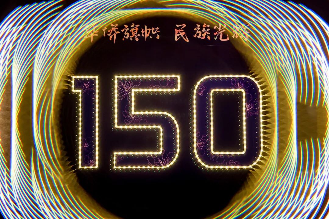 “华侨旗帜,民族光辉”“嘉庚精神传薪火,矢志报国谱新篇”“宁可卖大厦,也要办厦大”……树影灯带,诗意交织,以致敬陈嘉庚先生和母校为主题的场地布置,映照着校友相聚的笑脸。