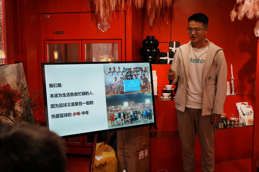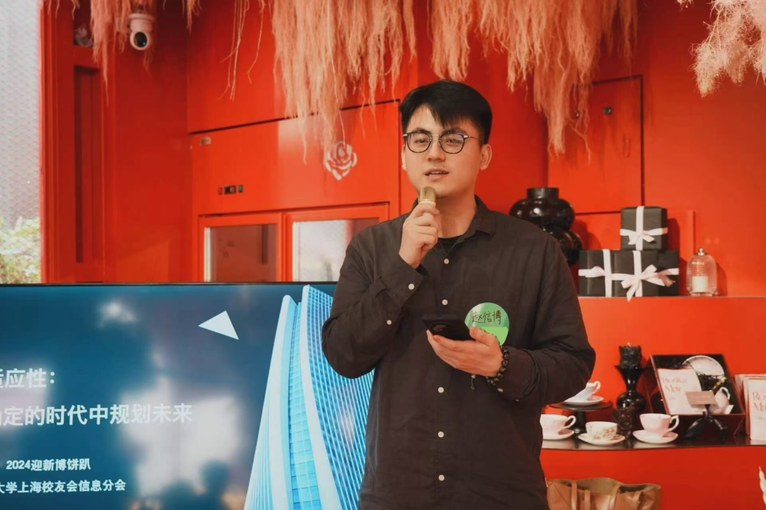 郭敏杰分享了过去几年上海校友会篮球队取得的佳绩。同时,他还以过来人的身份,为学弟学妹们安利了周末运动消遣的好去处,鼓励大家在工作之余,通过体育锻炼放松心情,享受运动带来的乐趣与活力。