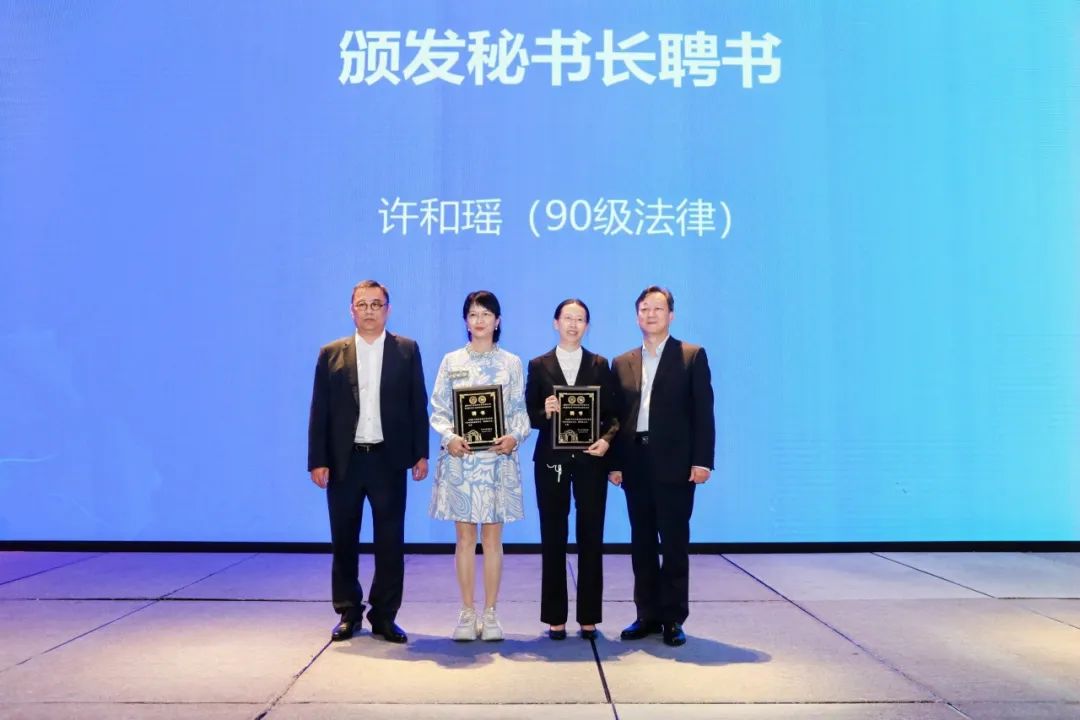 在热烈的掌声中,李军华副会长、麻华常务理事、蔡良平常务理事、陈一飞理事等四位校友接受了增补颁发的聘书。