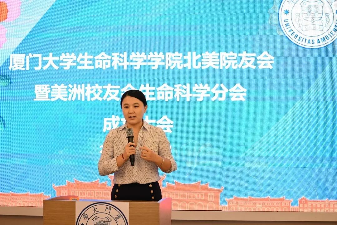 厦门大学美洲校友会理事长孙淑婷致辞并祝贺分会成立。她表示,生命科学分会是美洲校友会大家庭的重要组成部分,她将全力支持分会开展工作,建立母校与校友沟通的桥梁,更加紧密地联系校友、服务校友。