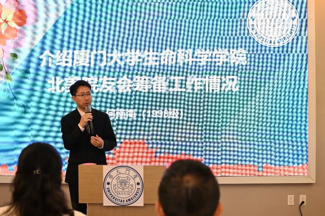 首任会长何南海在讲话中表示,在厦园求学的时光让他学到专业知识,收获了真挚的同窗情谊和珍贵的事业伙伴,他感恩母校母院的培养,将履行会长的责任和担当,继续发动力量,更广泛地联系北美地区校友,促进校友间的交流与合作,把校友会打造成为温暖的家。