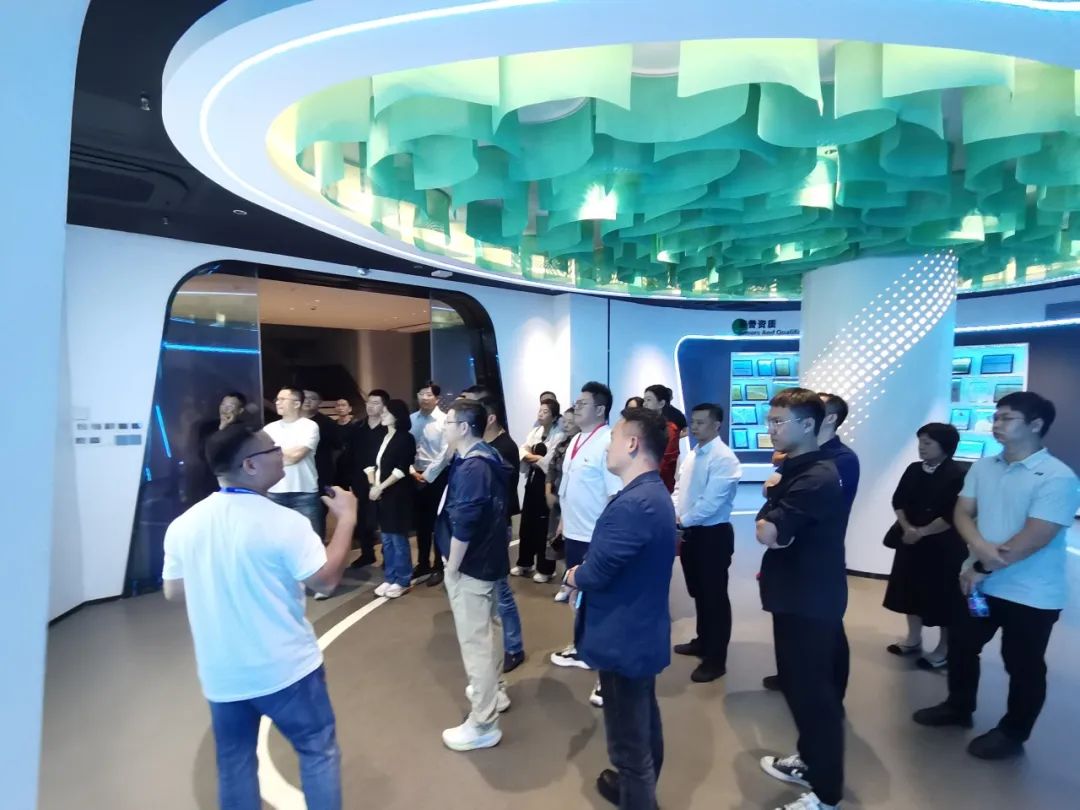 在青创城国际网批中心,运营人员向大家详细介绍中心运营情况。