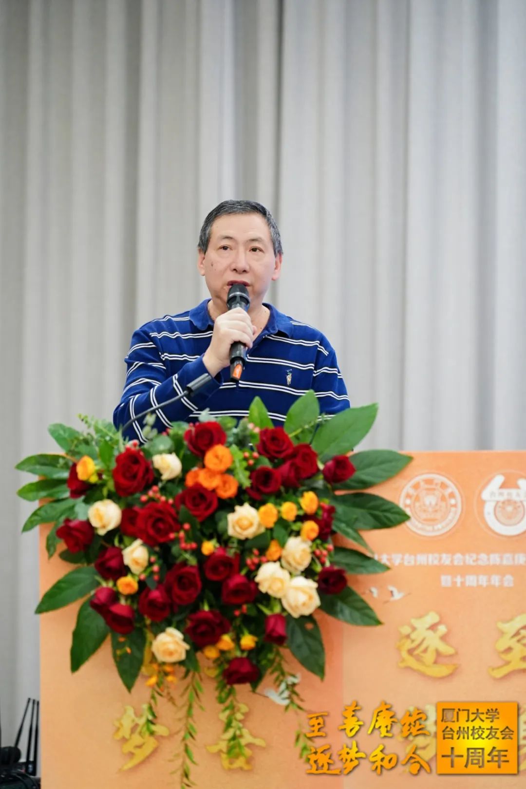 赖虹凯在讲话中表示,台州校友会以丰富有趣的活动将校友及其家属紧密的团结在一起,塑造一个温暖有爱的厦大台州校友大家庭,得到母校和广大台州校友一致好评。他介绍母校最新发展情况,并指出,台州校友在助力母校招生宣传、学生实习就业等方面发挥重要作用。他勉励台州校友会继续加强自身建设,立足校友需求,为校友赋能、为台州经济社会发展作出更大贡献,并鼓励和引导更多校友参与到母校的发展建设中来,为母校与时俱进建设世界一流大学贡献力量。