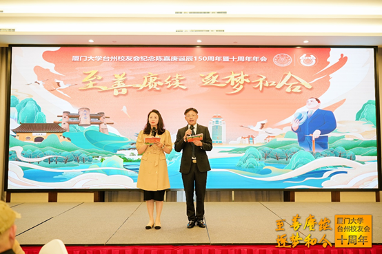11月2日,厦门大学台州校友会以“至善赓续 逐梦和会”为题在台州椒江举办纪念陈嘉庚先生诞辰150周年暨校友会成立十周年年会。厦门大学党委原副书记、校友总会副理事长赖虹凯,校友总会秘书长王智兰,浙江省厦门大学校友会监事长徐振晓,温州校友会会长虞智勇、副秘书长林煜淇、程新阳,嘉兴校友会副会长冯正华、副秘书长李晨辉,上海校友会副秘书长傅琳,宁波校友会副秘书长李双洋、理事郑立东等来自母校和兄弟校友会的嘉宾以及100余名台州校友、家属共同参加大会。年会由石卫滨和郑爽校友担任主持。