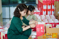 王智兰代表校友总会向台州校友会赠送纪念品。