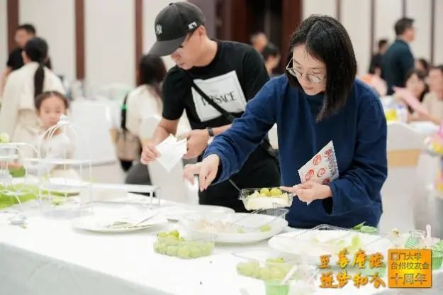 博饼和晚宴环节,校友围坐在一起,骰子在碗里欢快地跳跃。丰厚的奖品激发大家无穷热情。每一次掷骰子都牵动人心,欢呼声响彻整个会场。