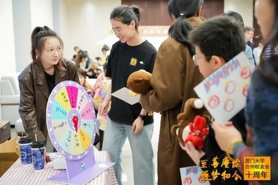 年会游园会主要由怀旧零食摊和游戏区组成。零食摊主题是儿时记忆,校友可以免费拿取自己喜欢的零食。游戏区是本次活动的一大亮点,由套圈圈、萝卜倒了、踢个毽子、你对厦大知多少、扔沙包等5个小游戏组成。大家玩得不亦乐乎,欢声笑语不断。