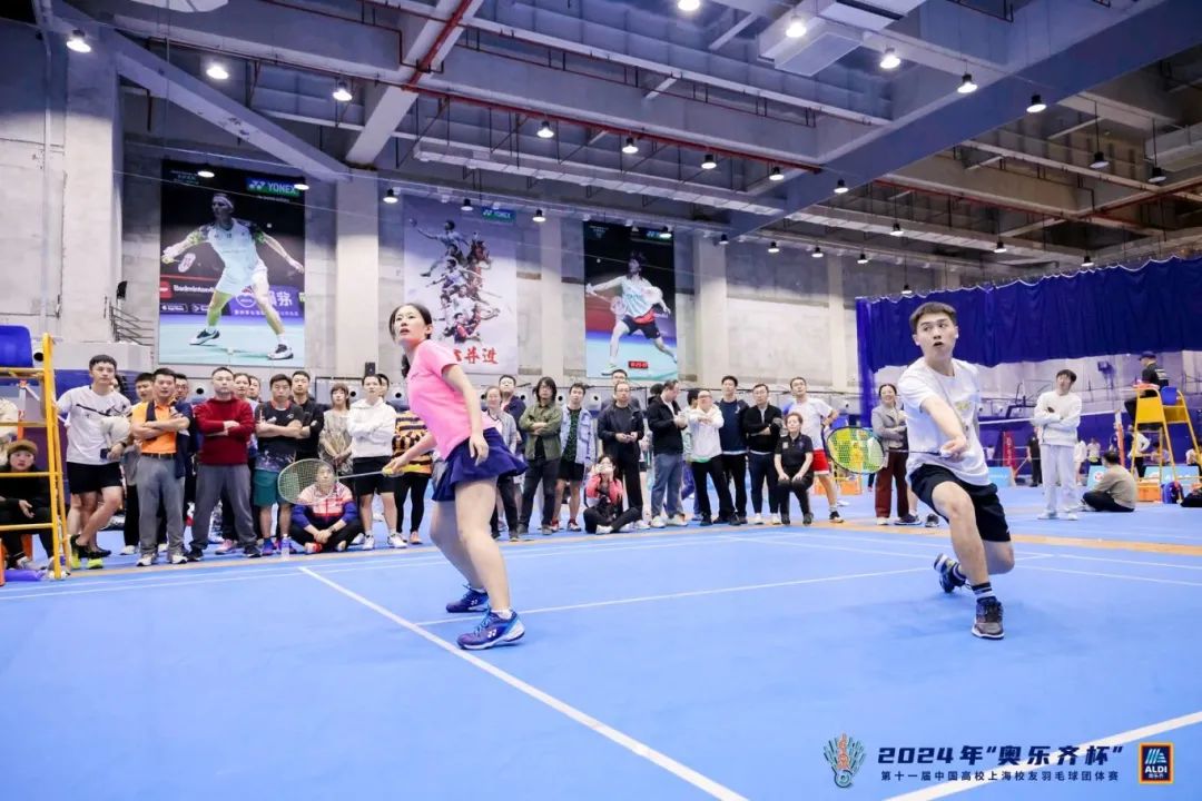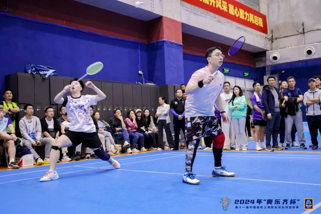 紧接着,2018届临床医学杨铭和2021届环境科学李晓杰搭档男双,面对中科大队最富经验的男双组合,比分一度胶着,双方都难以拉开差距。关键时刻,李晓杰果断上网,搓出一个高质量的网前球,逼迫对手挑球,杨铭紧随其后全力扣杀,力量巨大,对手虽勉强接起,但已无法控制方向,球飞出场外。之后对手试图利用技术打破李晓杰的网前封堵,但几番尝试后均告失败。厦大队以21:17、21:19战胜对手,拿下第二场。