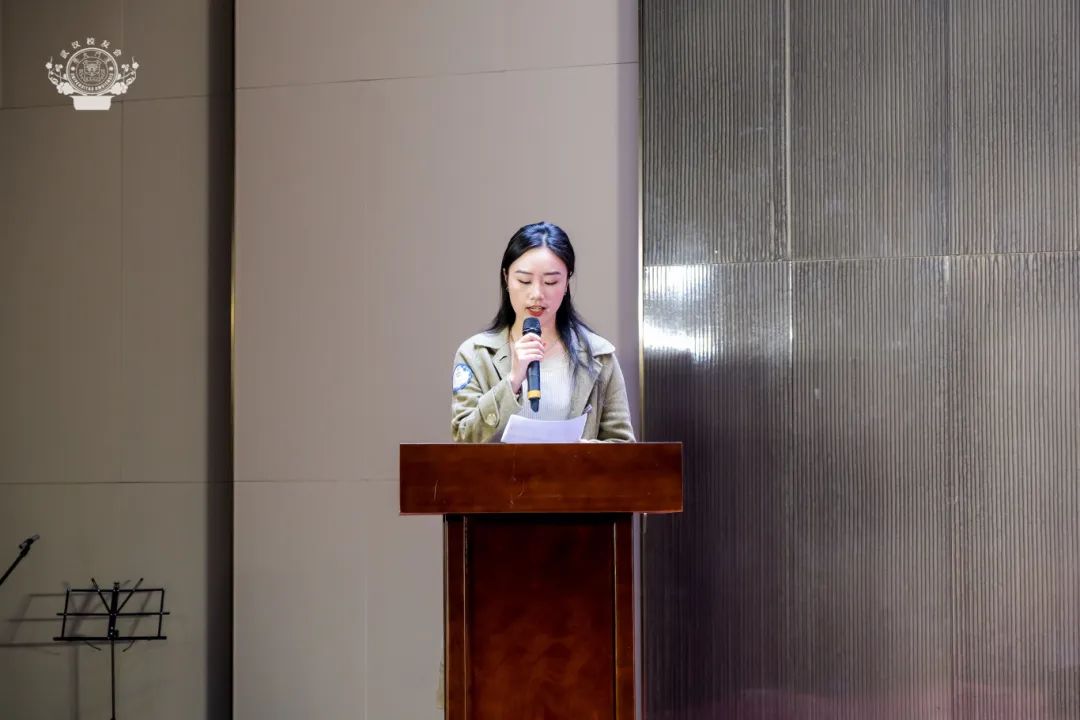 2024届航空航天学院胡雅琦校友代表258名来到湖北地区的新校友发言。她表示从凤凰花开之地来到武汉,因为嘉庚精神共同的归宿认同感,一到这个陌生的城市,就感受到校友“一对眼神就知道你是厦大的”温暖和关爱。