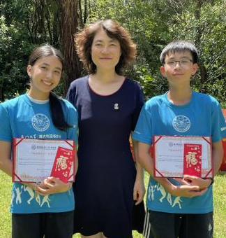 林晓青参赞为同时获得“南强励学金”的姐弟陈浩淼和陈浩瀚颁奖