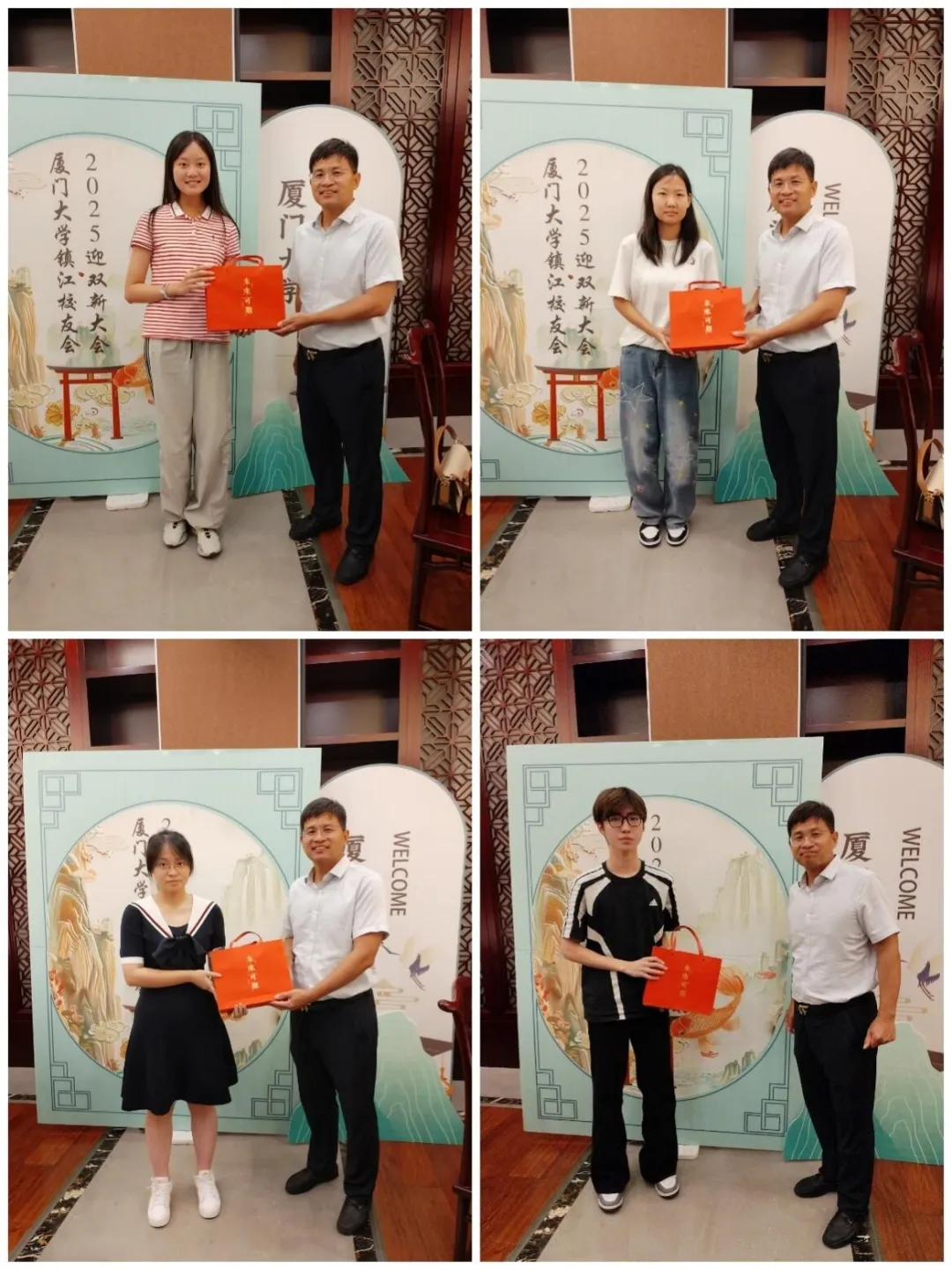 今年,镇江共有8位学子考入厦门大学,其中6人赴厦门校区、2人前往马来西亚校区深造。5位2025届毕业生也选择来到镇江,投身于法律、统计、教育、电力、农机等不同领域,为镇江发展注入“厦大力量”。在纪念品赠送环节,黄勇为新生和新校友代表分别颁发入学贺礼与入职纪念品,寓意校友情的接续与传承。